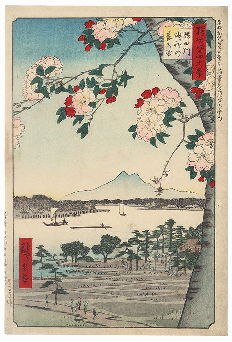 Forty-eight Selected Views of Edo - Not much is known or has been published about this unusual and rare series, "Forty-eight Selected Views of Edo," which features some of the finest designs from Hiroshige's original "One Hundred Views of Edo" series. Published in 1892 by Kodama Matashichi, the series includes striking prints produced with the original blocks, and in some cases, the addition of new blocks. This memorial series includes some of Hiroshige's most memorable images, many of which are now hard to find from the original edition. Beautifully detailed with soft shading and fine line work, prints from the "Selected Views" are a great opportunity to acquire these classic Hiroshige subjects.